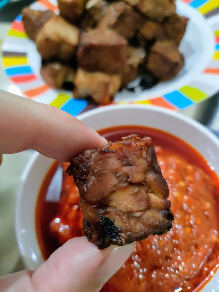 Ayam bumbu khas yang digoreng pas atau dibacem manis gurih, empuk hingga ke serat dalam.